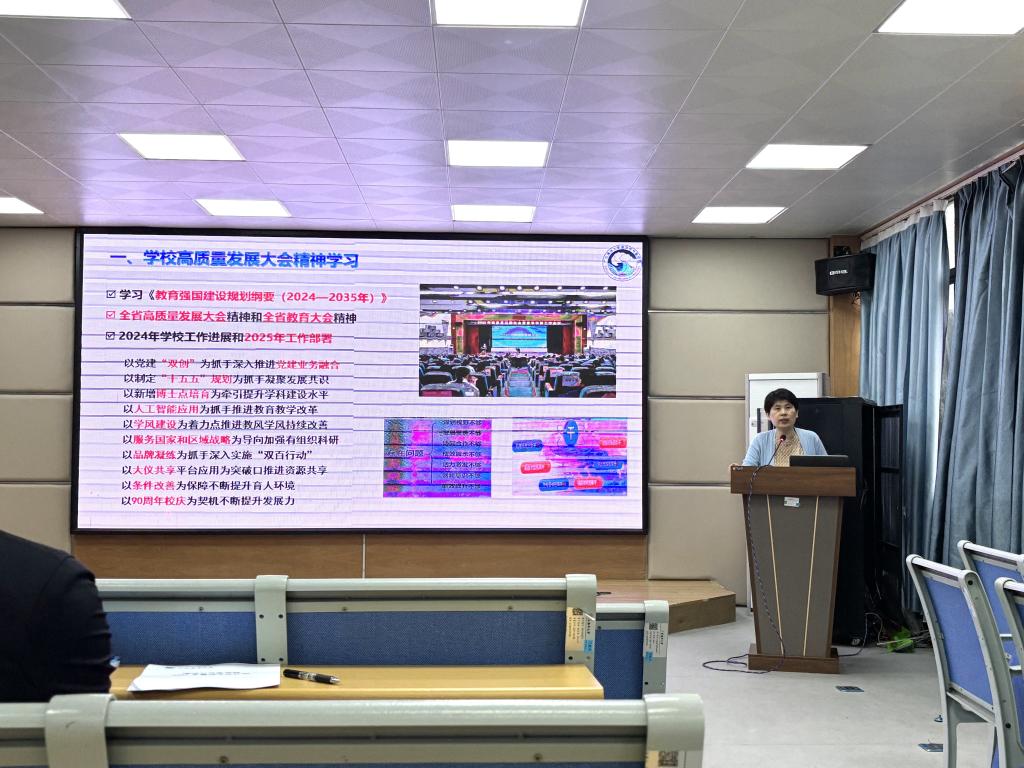 在海科楼107会议室召开了2025年高质量发展大会暨春季学期工作会议。学院全体教职工参加了会议,会议由院长谢玲玲主持。