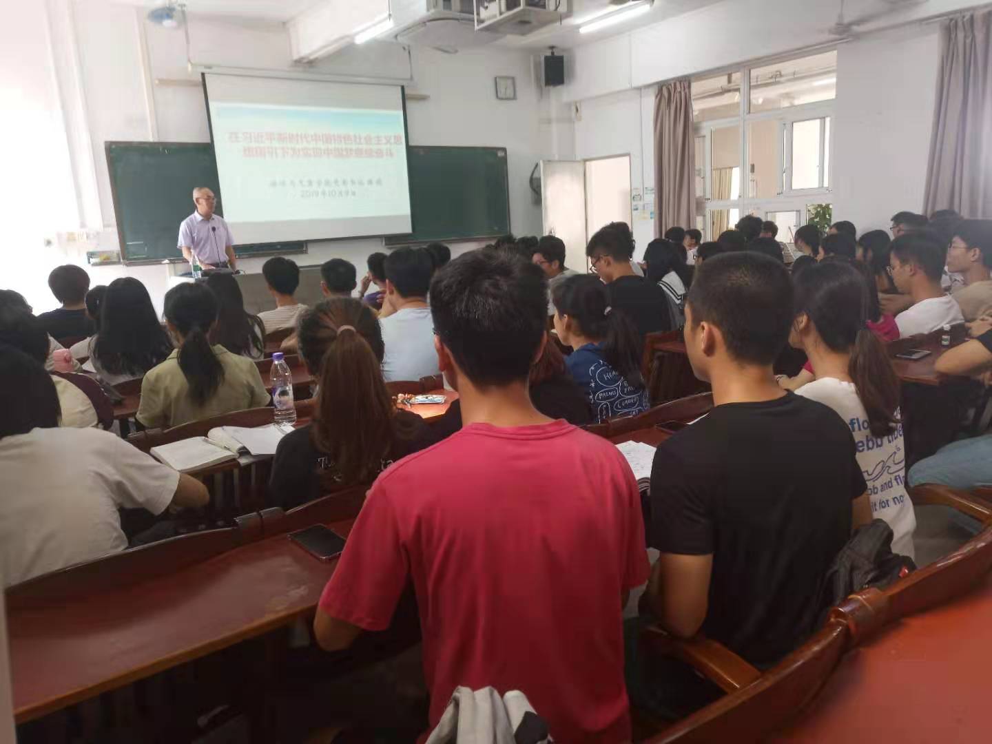 党委书记陈晓在钟海楼03025为80名学院团委学生干部讲授以《在习近平新时代中国特色社会主义思想指引下为实现中国梦继续奋斗》为主题的新学期思政第一课。