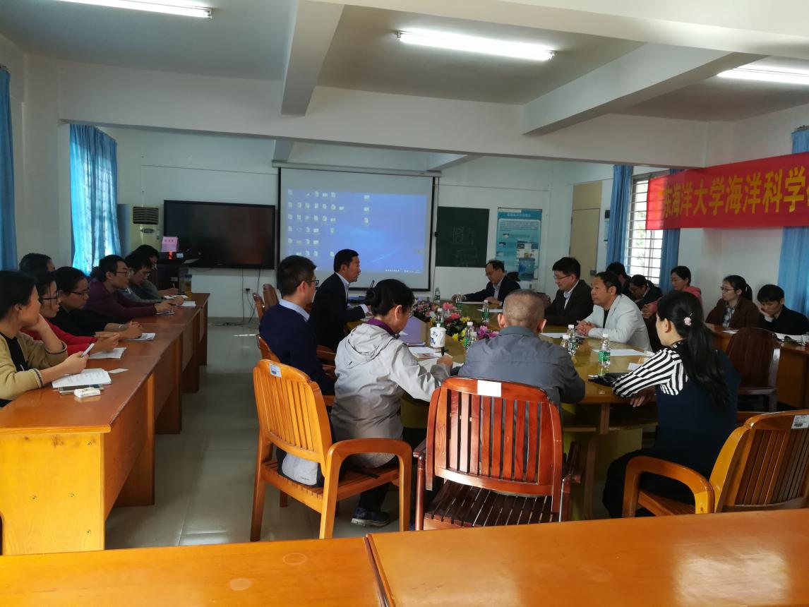 1月24日上午,逼喱逼喱 在湖光校区海博楼210会议室召开2017年度海洋科学科研团队建设检查会。刘东超副校长、洪鹏志处长、简纪常处长、周昌仕副处长、黄妙芬教授等专家应邀莅临指导。会议由学院院长张书文主持,团队负责人谢玲玲、陈法锦、孔德明,以及团队骨干成员等20余人参加。