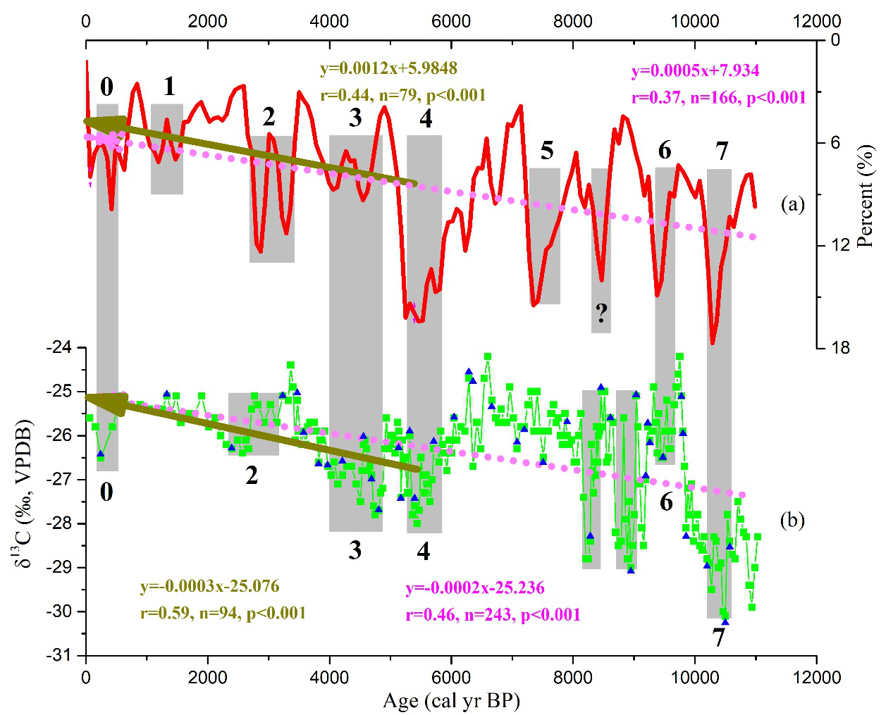 Rao Zhiguo*, Huang Chao, Xie Luhua, Shi Fuxi, Zhao Yan, Cao Jiantao, Gou Xiaohua, Chen Jianhui, Chen Fahu. Long-term summer warming trend during the Holocene in central Asia indicated by alpine peat a-cellulose δ13C record. Quaternary Science Reviews. 2019, 203, 56-57, doi.org/10.1016/j.quascirev.2018.11.010.