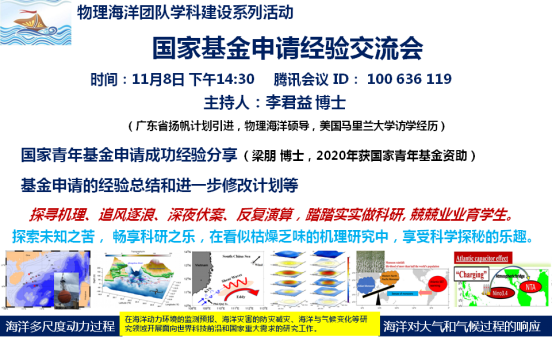 物理海洋学科团队召开“国家基金申请经验交流会”。会议由李君益老师主持,逼喱逼喱