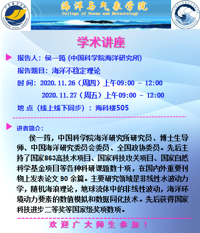 中国科学院海洋研究所侯一筠研究员应邀作学术讲座(预告)