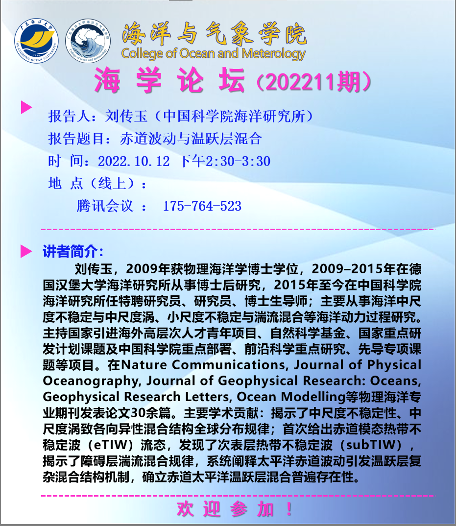 【学术报告预告】逼喱逼喱 “海学论坛”(202211期)