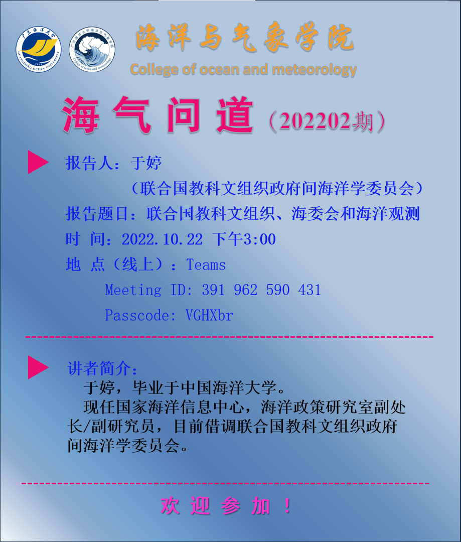 【学术报告预告】逼喱逼喱 “海气问道”(202202期)