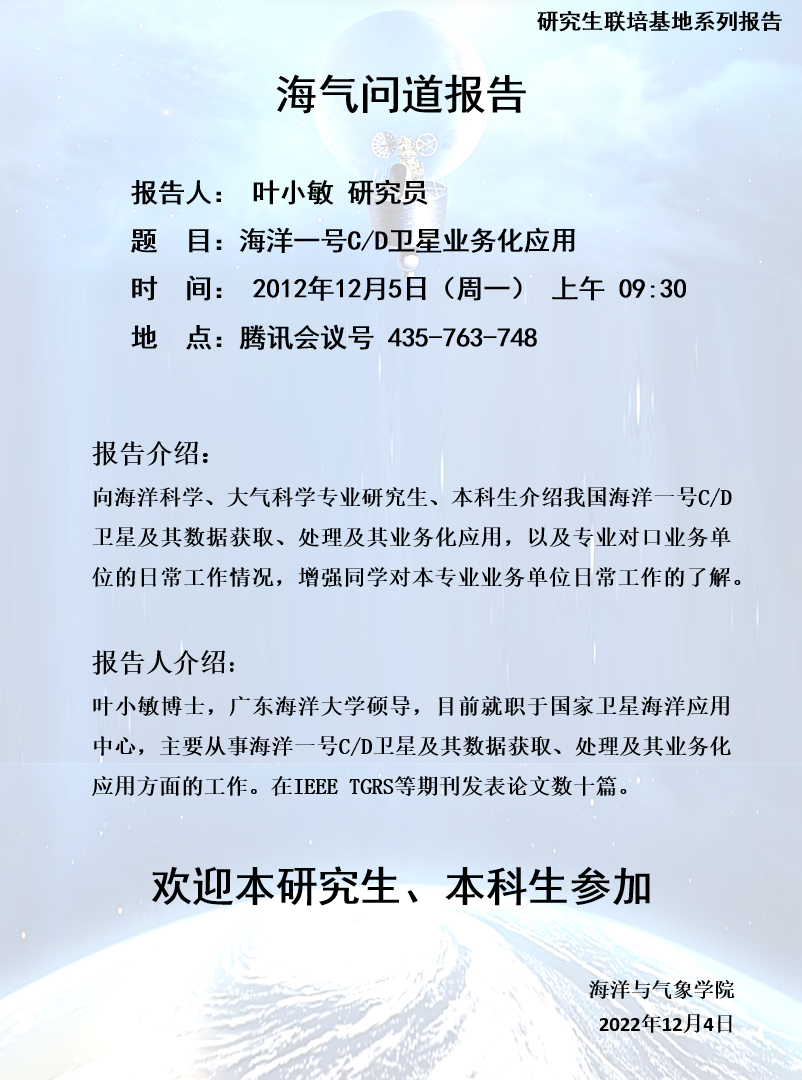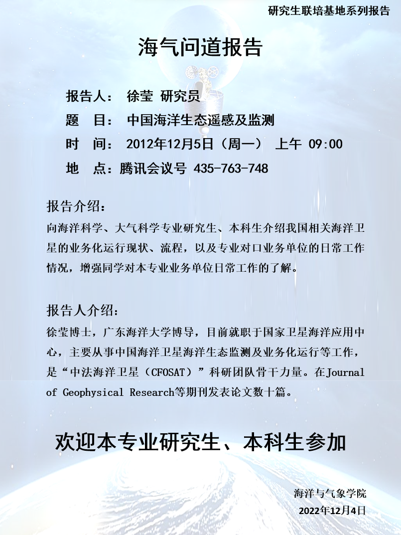 【学术报告预告】逼喱逼喱 “海气问道”(202203期)