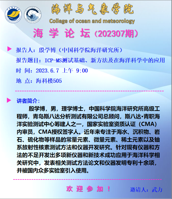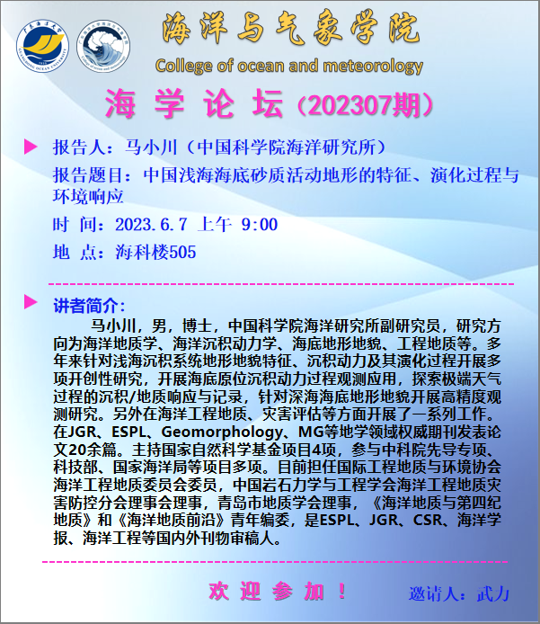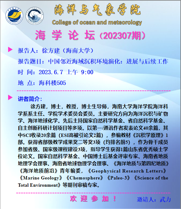 【学术会议通知】逼喱逼喱 “海学论坛”(202307期)