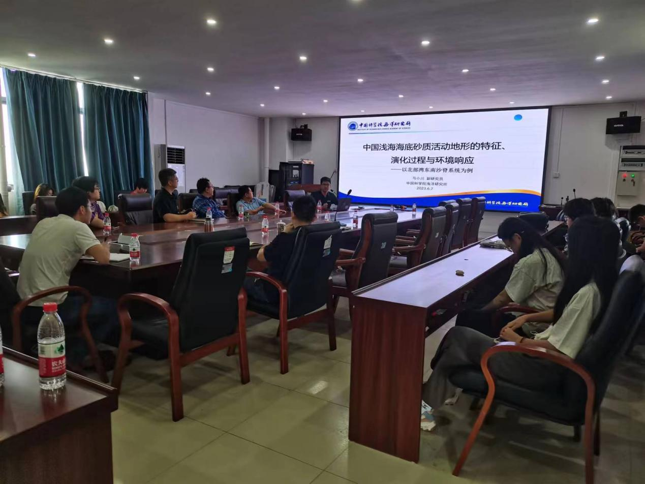 马小川副研究员以《中国浅海海底砂质活动地形的特征、演化过程与环境响应——以北部湾东南沙脊系统为例》,详细介绍了海底地形地貌特征和分类,研究海底沉积地形地貌的科学、工程和灾害意义,沉积地形地貌研究的主要手段等基础知识。然后介绍了他近年来在我院关注的北部湾等南海区域海洋沉积地形地貌研究方面的主要研究成果,特别是北部湾沉积地貌演化与物理海洋交叉结合的研究令人影响深刻。
