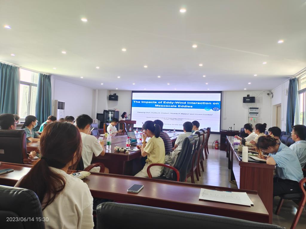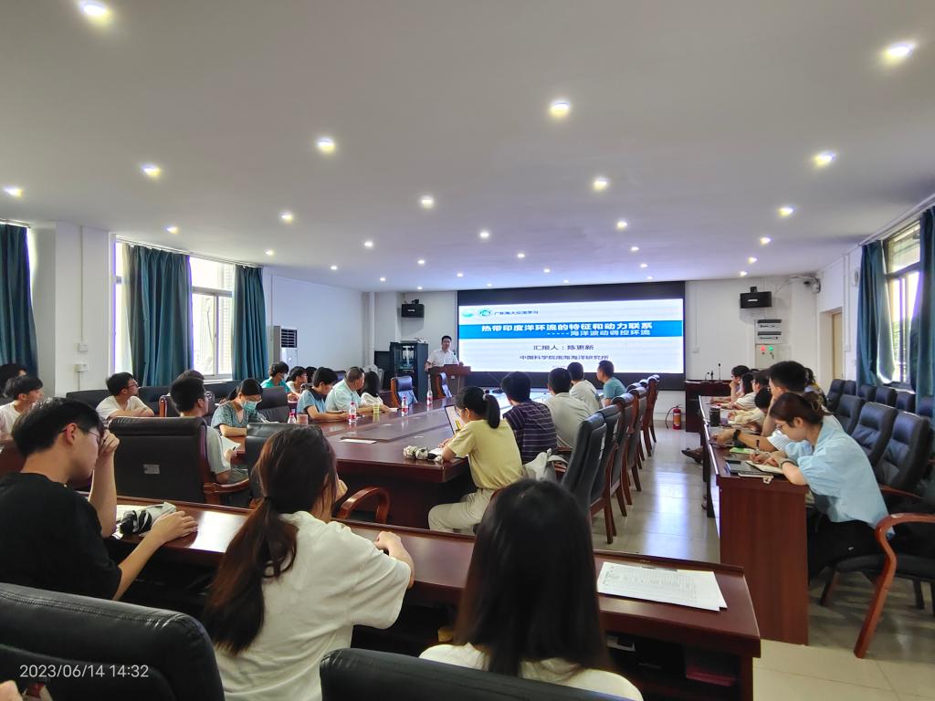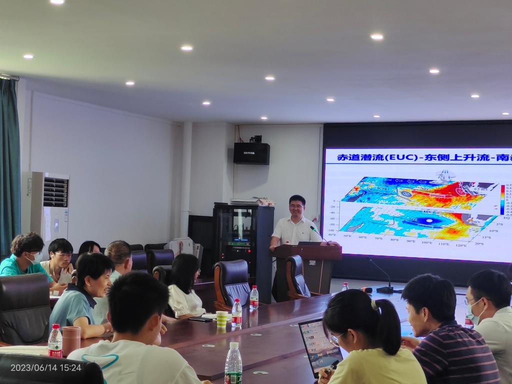 举行了2023年第8期海学论坛,本次论坛邀请到了中国科学院南海海洋研究所陈更新研究员、储小青研究员、钟文静研究生在海科楼505分别作了题为《热带印度洋环流的特征和动力联系-----海洋波动调控环流》、《涡旋-风相互作用对涡旋的影响》、《孟加拉湾西部偶极子涡旋的特征及产生机制研究》的学术报告。报告由我院谢玲玲院长主持。