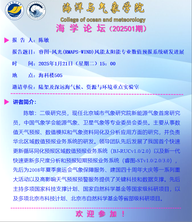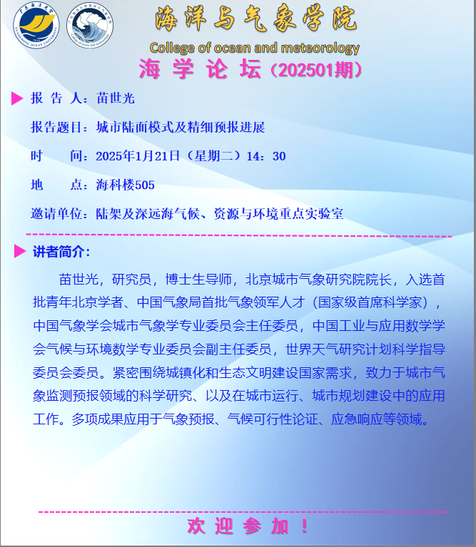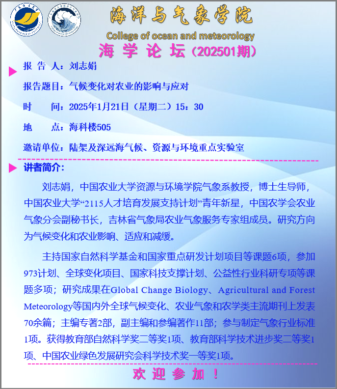 【学术会议通知】逼喱逼喱 “海学论坛”(202501期)