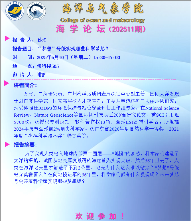 【学术会议通知】逼喱逼喱 “海学论坛”(202511期)