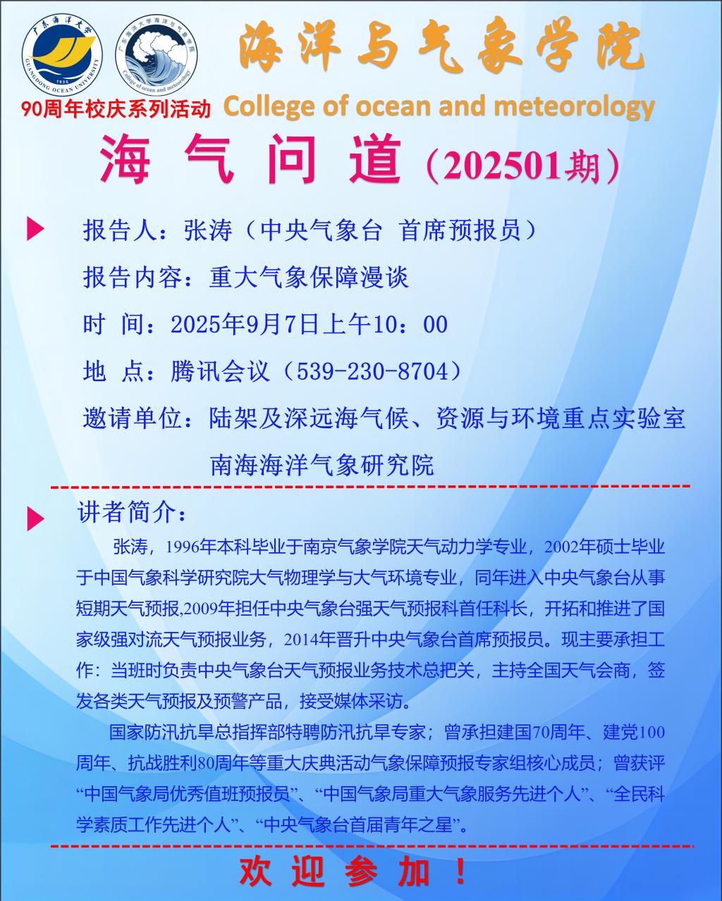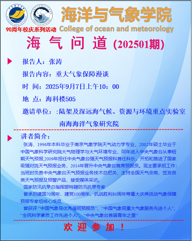 【学术报告通知】逼喱逼喱 “海气问道”(202501期)