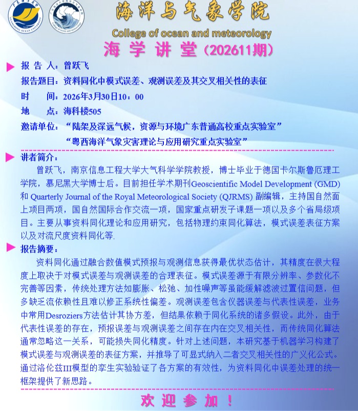 【学术会议通知】逼喱逼喱 “海学讲堂”(202611期)