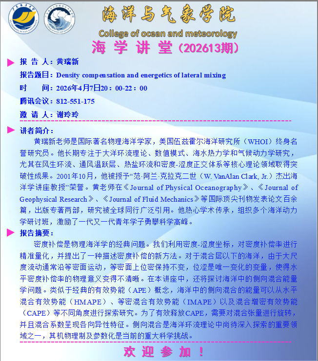 【学术会议通知】逼喱逼喱 “海学讲堂”(202613期)