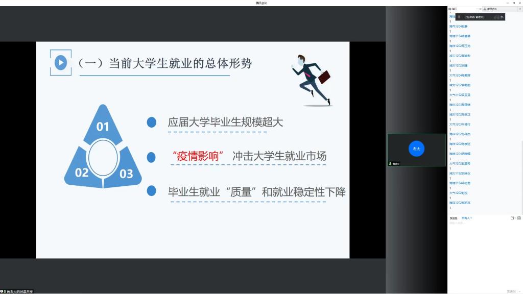 黄瑞焕老师在腾讯会议为学院青马班的学员讲授了以“职业规划与就业指导”为题的第六期青马工程培训班第七课。