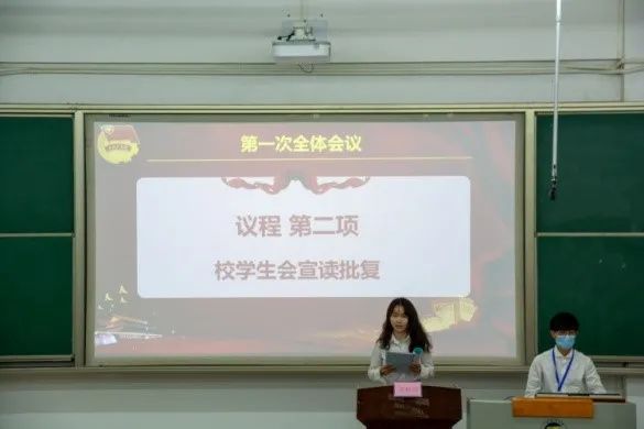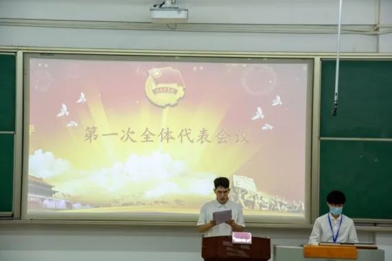 本次会议由学院团委书记梁敬伟主持。宣布大会开幕后,全体起立,共唱国歌,教室里激荡着充满爱国热情的歌声。会议的第一项流程由校学生会执行主席梁梓珊宣读批复,她肯定了逼喱逼喱