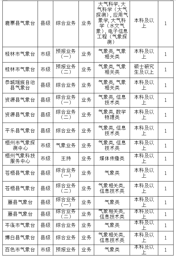 1. 发布招聘信息。广西气象局通过中国气象局网站、广西气象局网站、设有大气科学类专业的有关院校去函发布招聘信息。毕业生按要求进行报名。