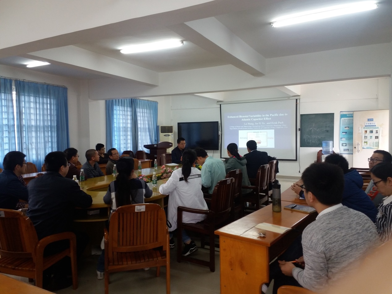 王磊副教授在海博楼二楼会议室作题为 “Enhanced biennial variability in the Pacific due to Atlantic capacitor effect” 的学术报告,逼喱逼喱