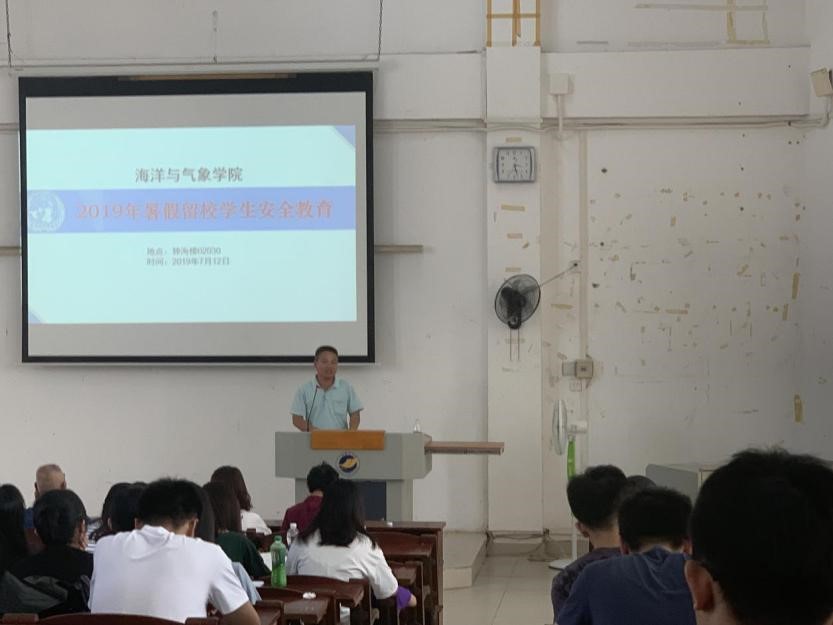 在钟海楼02030教室召开2019年暑假留校学生安全教育大会,学院党委书记陈晓、党委副书记刘宏英、全体辅导员以及申请暑期留校的全体同学参加了会议。大会由党委副书记刘宏英主持。