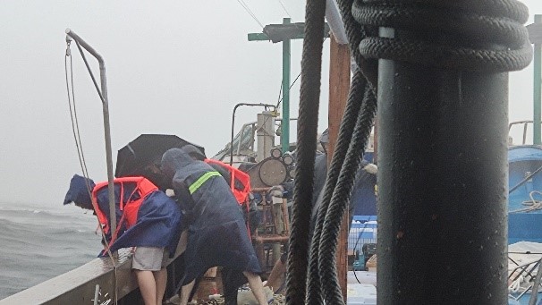 在这次调查中,团队成员勇敢地挑战恶劣的风浪、雨雾与雷暴,完成了全海域范围的气象观测、走航CTDADCP观测,并进行了25个大面站位观测,以及1个站位长达25小时的连续监测。同时,团队还广泛开展了周边流域的河水与地下水观测,获取了大量珍贵而详实的原始数据与样品。