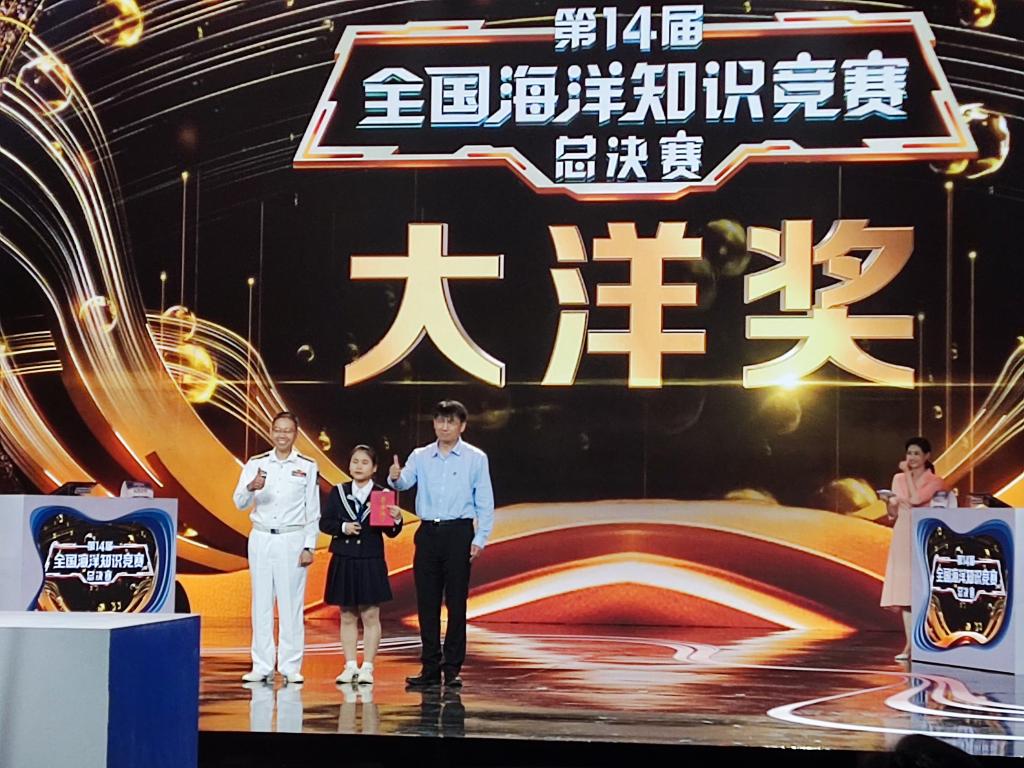 三位同学在现场以扎实的基础、沉着冷静的判断和出色的战略,从初始分数排名第五开始,过关斩将,战胜了晋级赛得分第一的天津队和第四的江苏省队,获得全国一等奖的佳绩。来自海洋科学专业的罗宇珊同学在比赛中沉着冷静,出色展现其丰富的海洋知识储备和临场应变能力,荣获个人赛“大洋奖”。