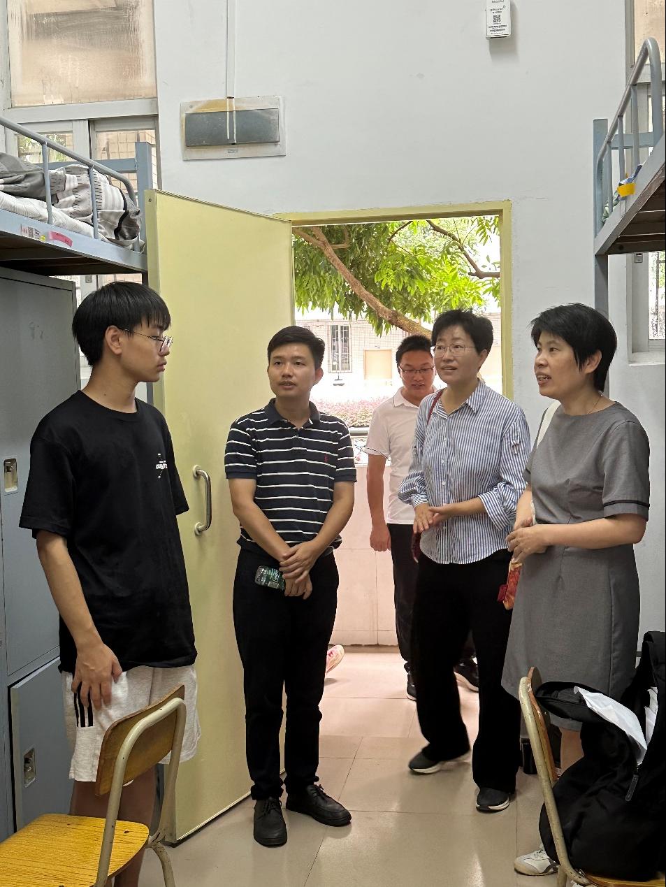 党委书记毛琪、院长谢玲玲带领班子全体成员、新生辅导员、新生班主任第一时间来到新生寝室实地走访,亲切慰问刚刚踏入海大校园的海气学子,为新生带去学院的关怀与问候。