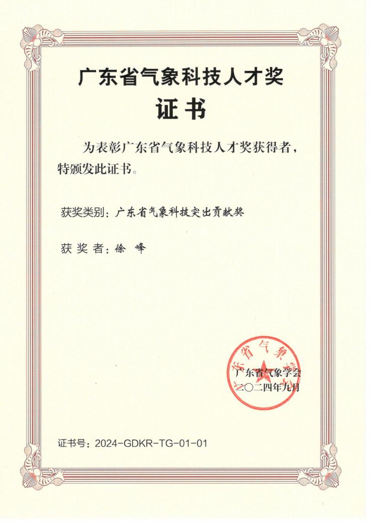 近日,广东省气象学会颁布了2024年度“广东省气象学会气象科技奖”评奖结果,公布了突出贡献奖、科学创新奖、技术进步奖等荣誉奖项。我院徐峰教授凭借卓越的科研实力、显著的学术贡献、深厚的教育底蕴,斩获2024年度“广东省气象科技突出贡献奖”。