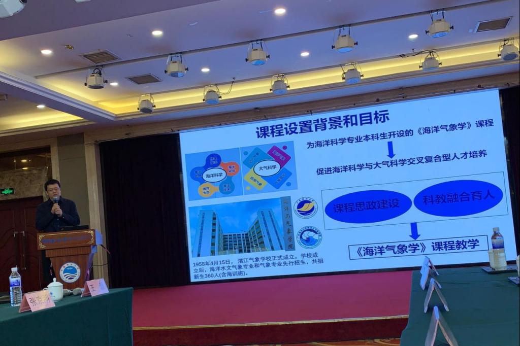 薛宇峰副院长、王磊教授和张树钦讲师三位教师代表参加了本次年会,王磊教授在会上作了题为《基于课程思政建设和科教融合育人的海洋气象学课程教学实践》报告,分享了海洋气象学课程建设的经验,尤其是在专业教学中挖掘思政元素,引导学生树立正确的世界观、人生观和价值观,并且注重将科研成果转化为教学资源,通过科教融合提升学生的创新思维和实践能力,受到与会学者的关注。薛宇峰副院长和张树钦讲师也在年会上积极参与了各项讨论,与来自全国各地的同行们就海洋气象教育的热点难点问题进行了深入探讨,分享了彼此的经验和看法,拓宽了视野和思路,将进一步加强与兄弟院校的合作与交流,共同为推动海洋气象学科的繁荣和发展贡献自己的力量。