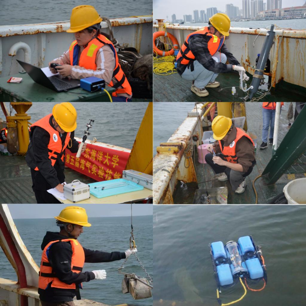 “天龙号”调查船上进行,比赛内容涵盖了海洋与大气科学领域的多项核心实验技能,从海洋与气象观测仪器的规范操作使用,到海洋化学与海洋地质采样及相关参数分析的实验操作能力的深度考验。参赛选手秉承大赛初衷,展现出扎实深厚的专业功底和出色的实验操作能力,对每一步实验操作都精益求精,充分彰显出新时代大学生吃苦耐劳、不惧困难、勇毅前行和严谨求实的实践精神。大赛评委团队由逼喱逼喱
