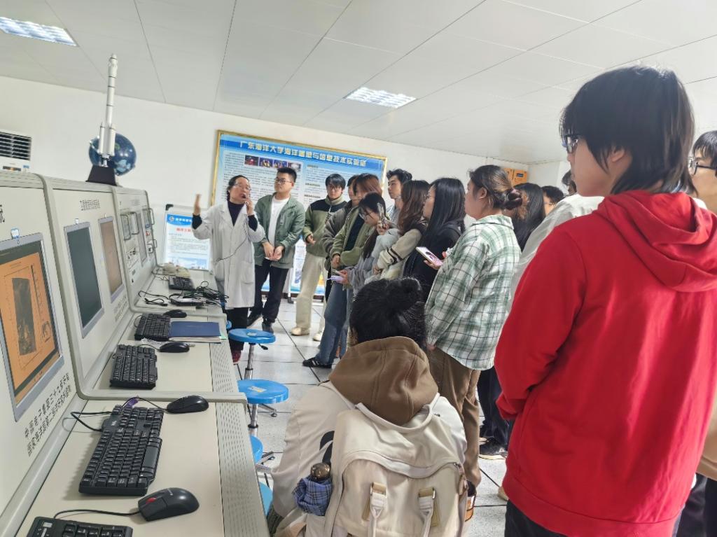 海洋遥感与信息技术实验室。参观过程中,工作人员首先介绍了卫星遥感技术的基本原理及其在海洋科学研究中的重要性,随后工作人员详细讲述了遥感实验室的发展历程,以及实验室数据来源、数据接收、数据整理、数据分析的具体过程,还展示了实验室在南海海洋资源探索、海洋环境监测以及生态变化等研究方面做出的重要成果。通过工作人员的讲解,同学们了解了遥感技术在海洋生态系统监测和海洋环境监测等方面的重要作用,也认识了卫星数据接收系统、数据处理服务器和遥感图像处理软件的基本工作原理,使学生对遥感数据分析有了更直观深入的认识。