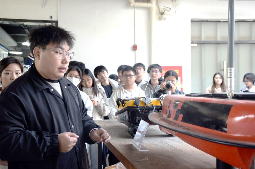 同学们接下来参观了广州至远海洋科技有限公司。首先,工程师带领大家参观了研发部门,这里主要负责开发和改进用于海洋探测与监测的各种设备,包括6000米深水摄像头、微光摄像头,中小型水下机器人,无人船、单波束测深仪、CTD等产品,针对机器人的工作原理和数据采集方式及无人船内部结构与搭载设备工程师进行了详细介绍。随后,工程师介绍了公司的主要业务方向,包括深入追踪海洋行业客户的实际应用需求,从事海洋仪器设备的自主研发和集成应用,助力海洋仪器设备的国产化推广与应用等,工程师还分享了一些公司在技术创新和服务客户方面取得的成绩和面临的挑战。此次参观使同学们获得了宝贵的第一手经验,加深了他们对海洋科技行业的理解,同时也激发了对未来职业发展的兴趣。