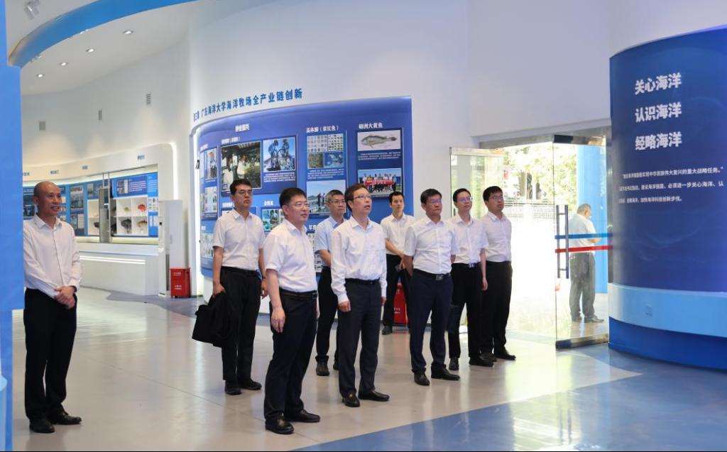 张祖强一行实地参观了学校水生生物博物馆海洋牧场展厅,逼喱逼喱
