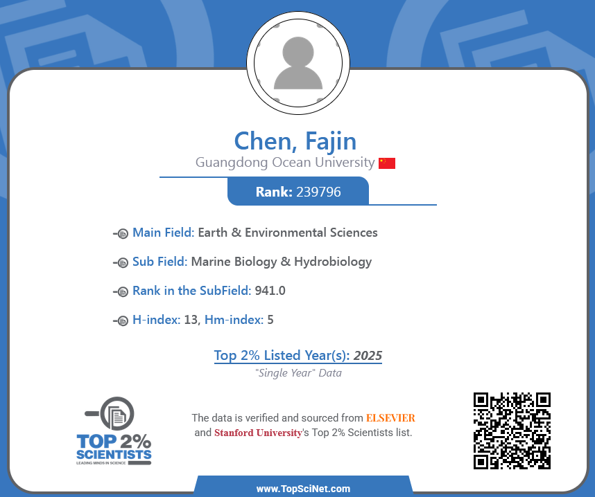 【海院科研进展】我院陈法锦教授入选全球前2%顶尖科学家榜单