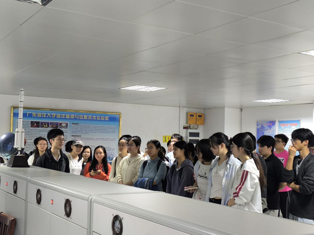 电信学院海洋遥感实验室,作为“全国海洋科普教育基地”的重要组成部分,这里成为学生开启实践探索的第一课堂。实验室工作人员系统讲解了卫星数据接收、整理、分析的全流程,展示了遥感技术在南海海洋环境监测领域的前沿成果,让学生直观理解了水色遥感等技术对海洋科学研究的核心意义。“原来课本里抽象的遥感反演原理,能直接转化为监测海洋生态变化的有效工具。”学生们在近距离观察卫星数据接收系统后纷纷表示,理论与实操的碰撞让专业认知更加深刻。