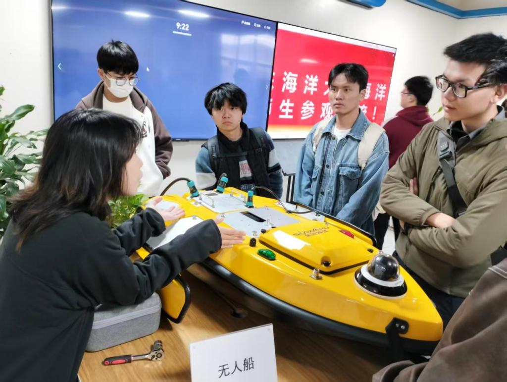 人才培养的鲜明特色。此次见习专门安排了广州至远海洋科技有限公司、广州桓乐生态环境科技有限公司两大涉海企业站点。在企业技术人员的带领下,学生们深入了解了海洋科技产品研发、海洋环境检测服务、生态修复工程等产业一线的发展现状,详细学习了企业在技术转化、质量管控、市场服务等方面的实践经验。企业负责人结合行业需求,为学生解读了海洋科学专业的职业发展路径,强调了实践能力与创新思维在职业发展中的核心作用,让学生对“应用型创新型海洋人才”的培养目标有了更清晰的认知。
