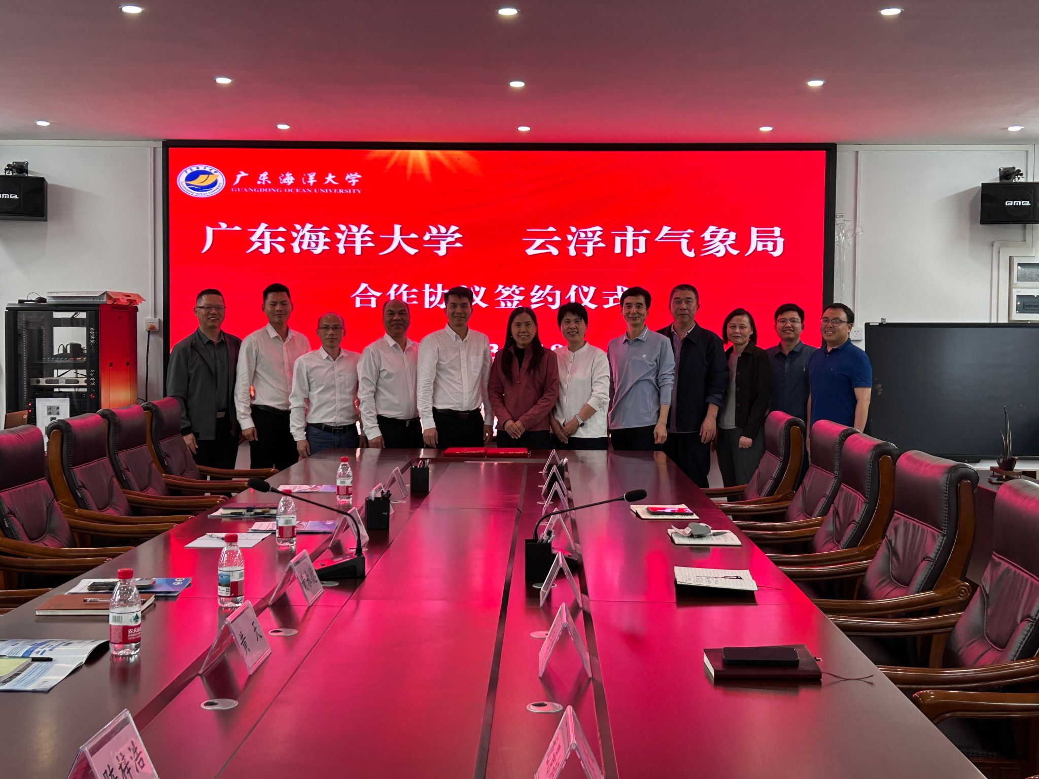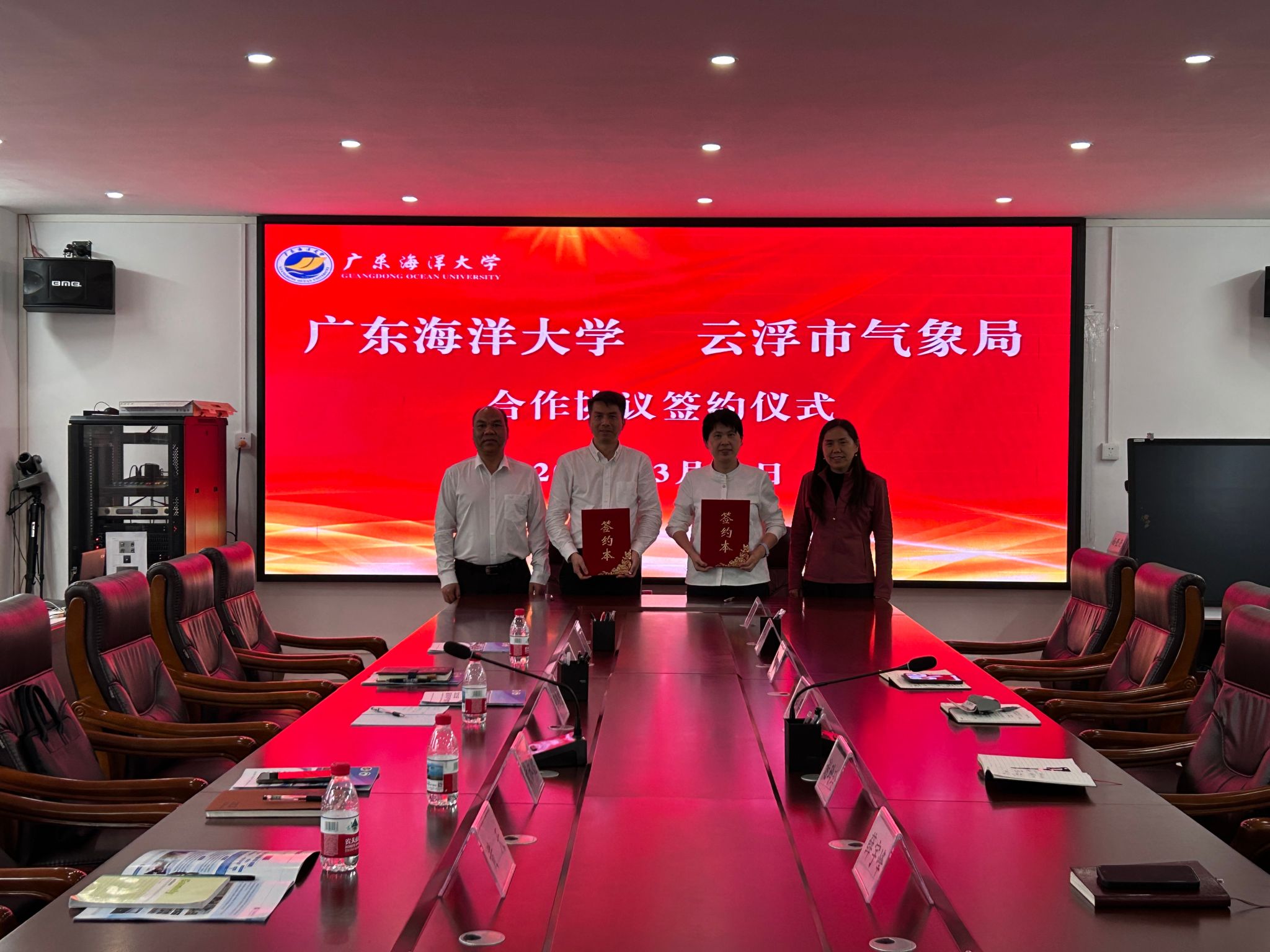 与云浮市气象局全面合作签约仪式在海科楼505会议室举行。学院院长谢玲玲、党委书记刘利群、副书记胡森林、副院长薛宇峰及教师代表;云浮市气象局党组书记、局长黄永德,副局长张志坤及相关部门负责人出席签约仪式。谢玲玲院长主持仪式。