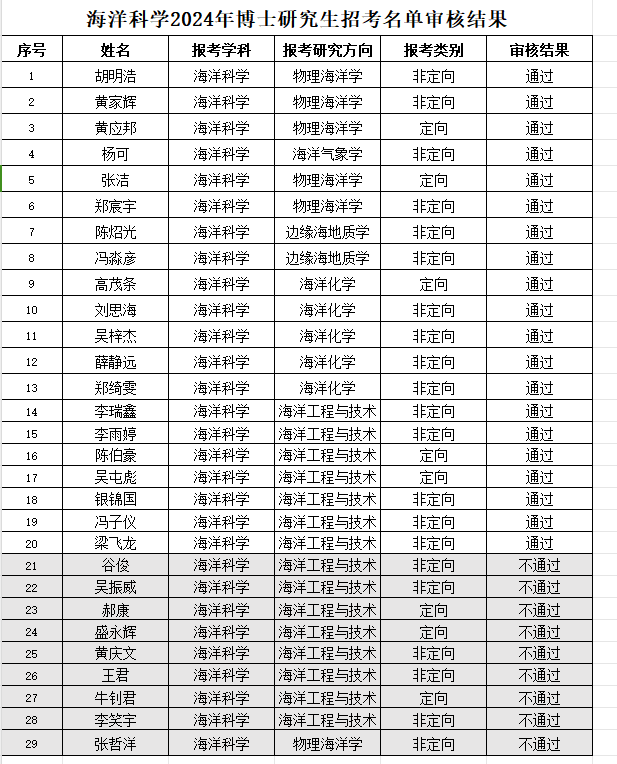 根据逼喱逼喱 博士研究生招生录取有关文件的规定,结合《逼喱逼喱 2024年全日制博士研究生招生章程》及《海洋科学学科2024年博士研究生招生考试工作方案》的相关要求,现对海洋科学博士招考学生资格审查结果予以公示。公示期为5日(即从2024年5月1日-5月5日),公示期内如对审查结果有异议,请以真实姓名及书面形式向海洋科学招生领导小组提供相关信息(联系人:曾老师,联系电话:2396095)。