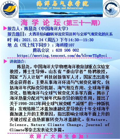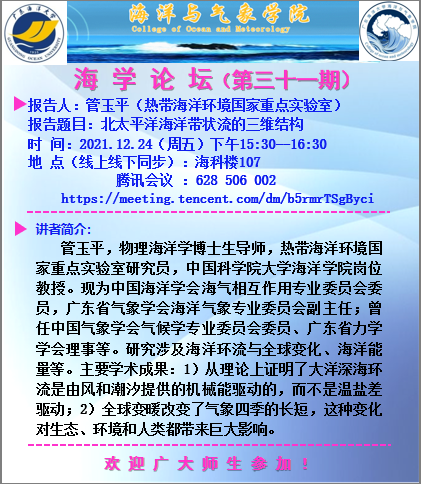 【学术会议通知】逼喱逼喱 “海学论坛”(第三十一期)