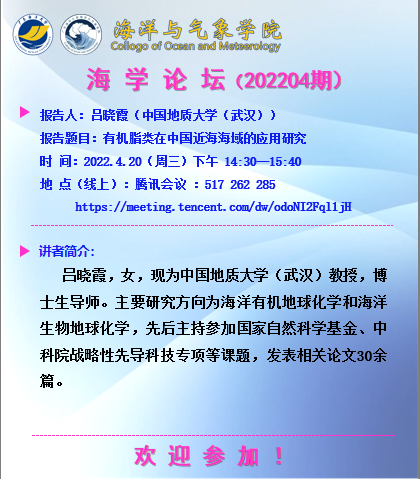 【学术会议通知】逼喱逼喱 “海学论坛”(202204期)