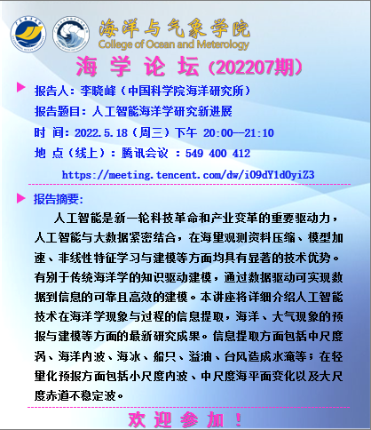 【学术会议通知】逼喱逼喱 “海学论坛”(202207期)