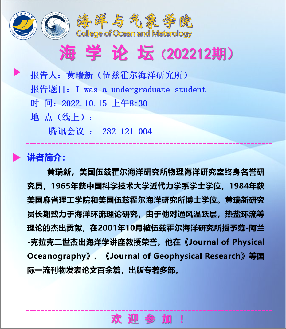 【学术会议通知】逼喱逼喱 “海学论坛”(202212期)
