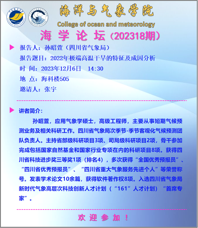 【学术会议通知】逼喱逼喱 “海学论坛”(202318期)