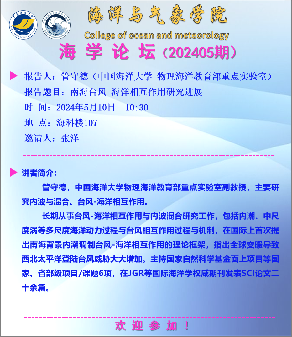 【学术会议通知】海学论坛 2024 05期