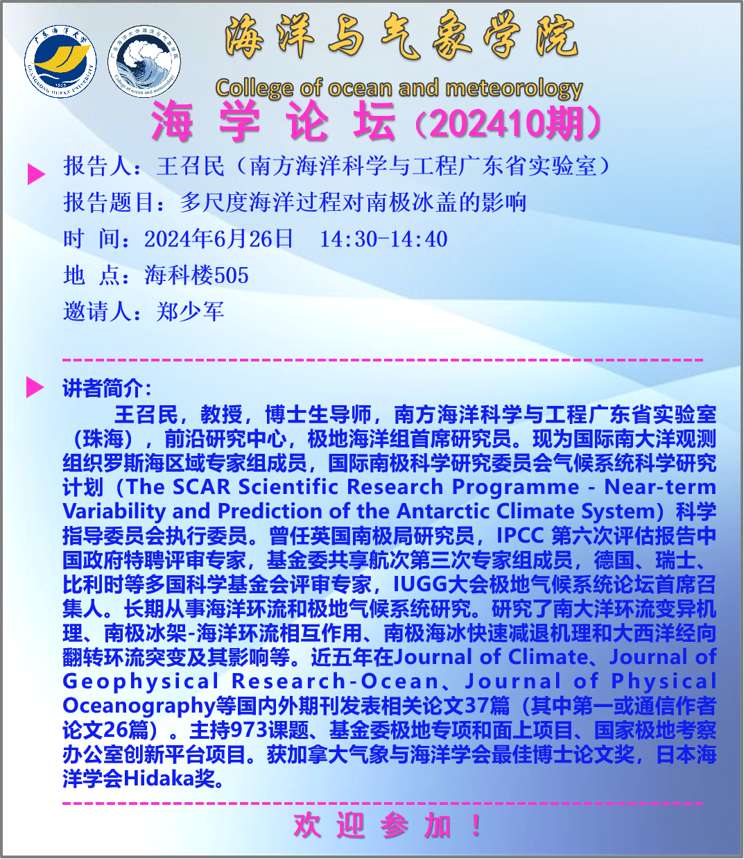 【学术会议通知】逼喱逼喱 “海学论坛”(202410期)