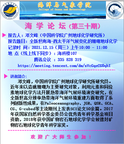 【学术会议通知】海学论坛(三十期)