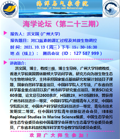 【学术会议通知】海学论坛(二十三期)