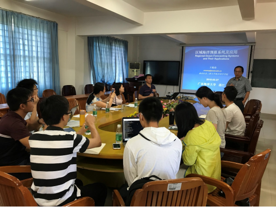 进行了学术访问,并于海博楼210会议室做了题为《区域海洋预报系统及应用》的报告。会议由研究院院长徐建军教授主持,本院教职工及研究生聆听了报告。
